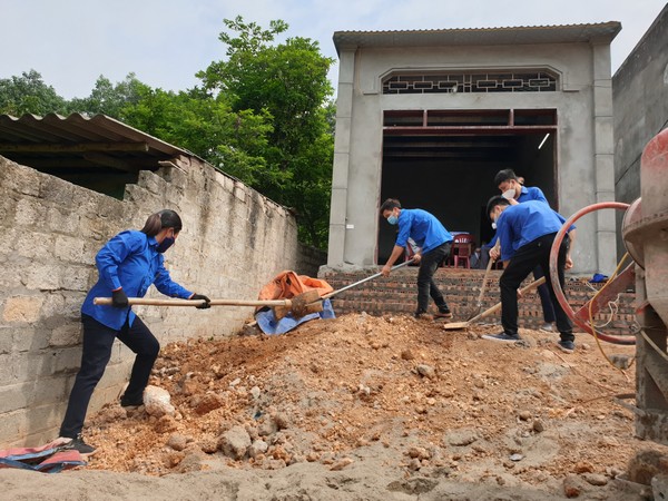Đoàn viên thanh niên thi công công trình Nhà nhân ái
