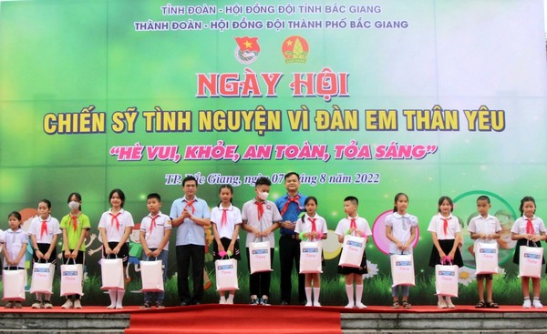 Dịp này, Tỉnh đoàn - Hội đồng Đội tỉnh tặng 32 suất quà cho 32 thiếu nhi có hoàn cảnh khó khăn vượt khó học tốt, mỗi suất trị giá 300 nghìn đồng; Thành đoàn - Hội đồng Đội thành phố trao tặng 20 áo phao cho 20 thiếu nhi; tặng 1000 cuốn cẩm nang phòng chống đuối nước.
