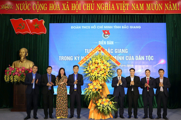 Lãnh đạo Tỉnh uỷ trao tặng lẵng hoa chúc mừng Diễn đàn "Tuổi trẻ Bắc Giang trong kỷ nguyên vươn mình của dân tộc"