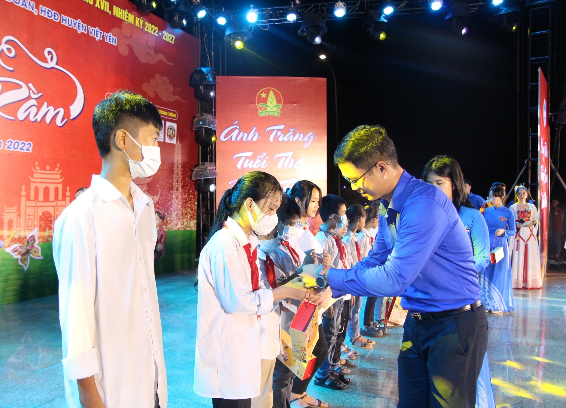 Công tác chăm sóc, giáo dục thiếu niên nhi đồng luôn được các cấp, các ngành và toàn xã hội quan tâm. Nhằm góp phần tiếp tục chăm lo, hỗ trợ, nâng cao đời sống vật chất và tinh thần cho thiếu nhi có hoàn cảnh khó khăn, thiếu nhi có thành tích xuất sắc trong học tập và công tác Đội. Tại chương trình, Ban tổ chức phối hợp với các cấp, ngành và đơn vị, doanh nghiệp tặng 150 suất quà cho thiếu nhi hoàn cảnh khó khăn trên địa bàn huyện. Mỗi suất gồm 500 nghìn đồng tiền mặt, một ba lô, một bình nước và một hộp bánh trung thu. Tổng giá trị các suất quà gần 200 triệu đồng.