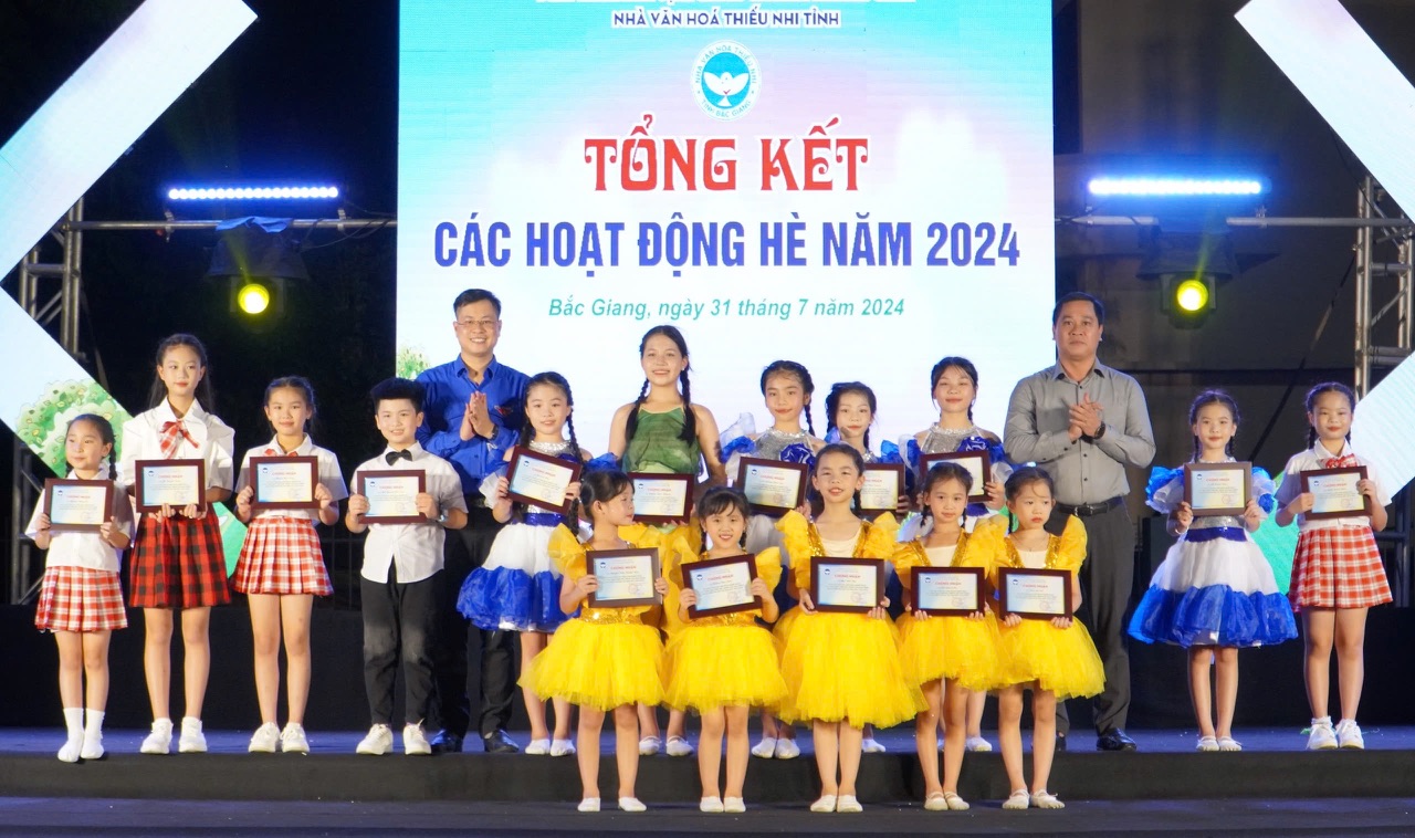Dịp này, Nhà Văn hóa Thiếu nhi tỉnh khen thưởng cho các thầy, cô giáo là những cộng tác viên xuất sắc trong công tác giảng dạy các lớp năng khiếuhè và tỉnh tặng giấy chứng nhận cho các em thiếu nhi tích cực tham gia các hoạt động hè năm 2024.