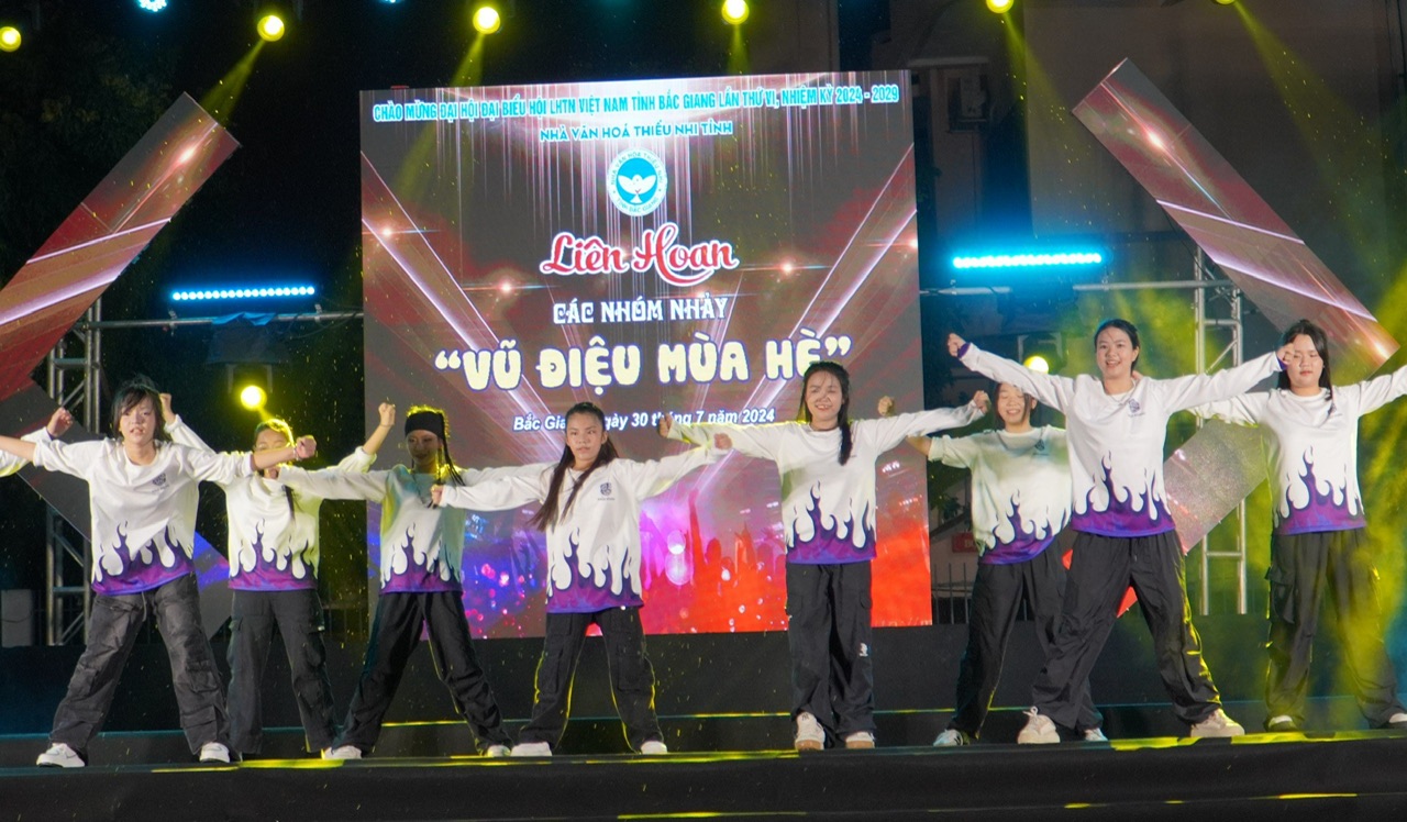 Trước đó, thiết thực tổ chức các hoạt động chào mừng Đại hội đại biểu Hội LHTN Việt Nam tỉnh Bắc Giang lần thứ VI, nhiệm kỳ 2024 - 2029; tối ngày 30/7/2024 tại sân khấu ngoài trời, Nhà Văn hóa Thiếu nhi tỉnh tổ chức Liên hoan các nhóm nhảy “Vũ điệu mùa hè” tỉnh Bắc Giang lần thứ II, năm 2024.