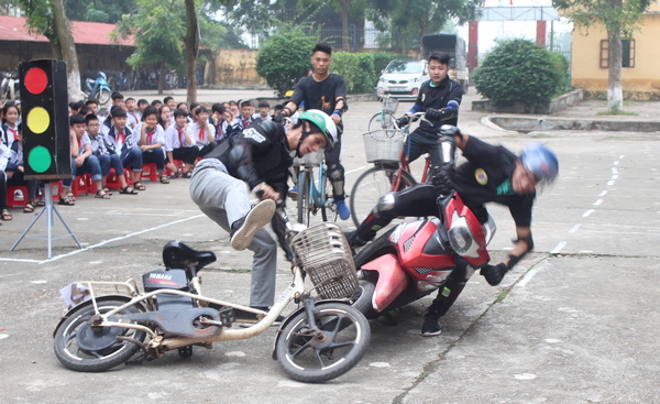 Trong chương trình, các đại biểu, thanh thiếu niên được xem các tình huống vi phạm pháp luật giao thông đường bộ dẫn đến va chạm, có thể gây ra tai nạn giao thông xảy ra trong thực tiễn có liên quan đến học sinh như: Lấn chiếm làn đường, sử dụng điện thoại, ô dù, vượt đèn tín hiệu, phóng nhanh vượt ẩu khi tham gia giao thông… Đồng thời, báo cáo viên ngành công an đã thông tin về những quy định xử phạt vi phạm hành chính theo Nghị định 100/2019/CP của Chính phủ; cảnh báo, phòng ngừa nguy cơ xảy ra tai nạn, va chạm giao thông và hướng dẫn kỹ năng tham gia giao thông an toàn cho học sinh trong mỗi tình huống cụ thể.