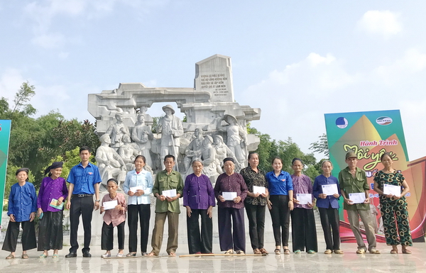 Nhân dịp này, Ban tổ chức hành trình đã trao 44 suất quà, mỗi suất trị giá 500 nghìn đồng cho cựu TNXP trên địa bàn tỉnh và trao 01 công trình thanh niên cho Khu Di tích lịch sử TNXP Nà Tu, xã Cẩm Giàng, huyện Bạch Thông.