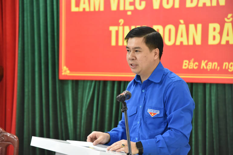 Tại buổi làm việc, đồng chí Triệu Tiến Trình, Ủy viên Ban Chấp hành Trung ương Đoàn, Bí thư Tỉnh đoàn trình bày Báo cáo kết quả thực hiện Thông báo số 1409-TB/TU ngày 26/3/2024 của Tỉnh ủy Bắc Kạn về việc thực hiện Kết luận của đồng chí Phó Bí thư thường trực Tỉnh ủy, Chủ tịch HĐND tỉnh tại buổi làm việc với Ban Thường vụ Tỉnh đoàn năm 2024.