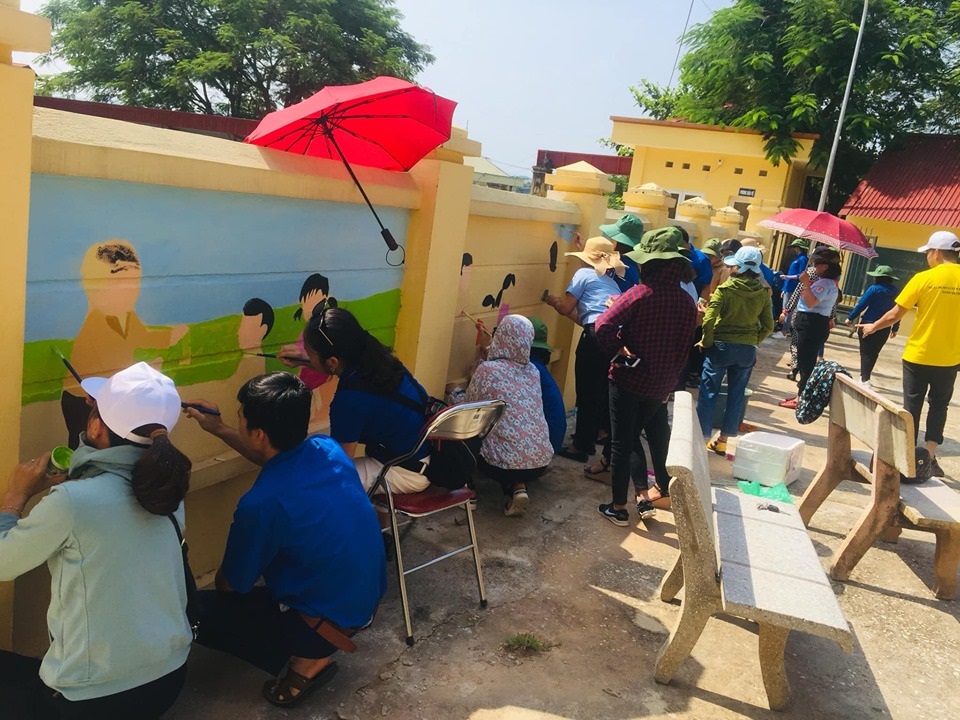 Công trình măng non “Tranh tường giáo dục” được thực hiện từ ý tưởng và sự chung tay của các anh chị phụ trách đại diện cho giáo viên Tổng phụ trách Đội, cán bộ phụ trách công tác Đội các huyện, thành đoàn, phòng Giáo dục và Đào tạo các huyện, thành phố trong toàn tỉnh. Công trình được thực hiện trên bức tường dài gần 20m với các thông điệp: “Bảo vệ môi trường”, giáo dục “An toàn giao thông”, tuyên truyền về lịch sử “Anh hùng nhỏ tuổi”, giáo dục Lễ giáo…