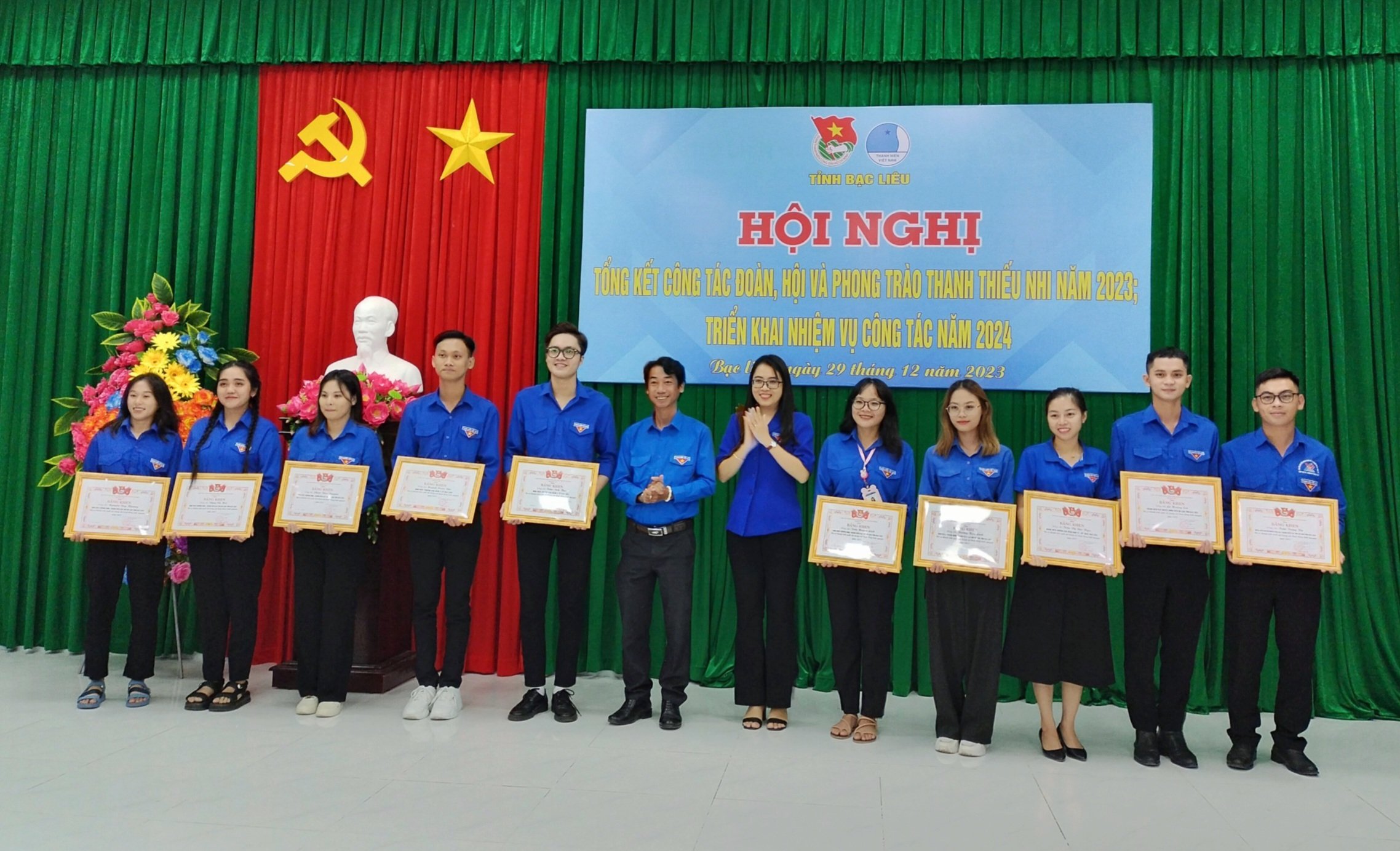 Dịp này, Ban Thường vụ Tỉnh đoàn đã trao cờ thi đua đạt danh hiệu đơn vị xuất sắc cho 03 đơn vị: Thành đoàn Bạc Liêu, Huyện đoàn Hồng Dân và Đoàn khối các cơ quan tỉnh. Tặng Bằng khen đạt danh hiệu xuất sắc cho đơn vị Huyện đoàn Phước Long. Tặng Bằng khen cho 04 đơn vị đạt danh hiệu Tiên tiến: Thị đoàn Giá Rai, Huyện đoàn Đông Hải, Huyện đoàn Vĩnh Lợi, Huyện đoàn Hòa Bình. Đồng thời, tặng Bằng khen cho 12 tập thể và 16 cá nhân có thành tích xuất sắc trong công tác Đoàn và phong trào Thanh thiếu nhi năm 2023; 10 cá nhân có thành tích xuất sắc trong các hoạt động tình nguyện năm 2023.