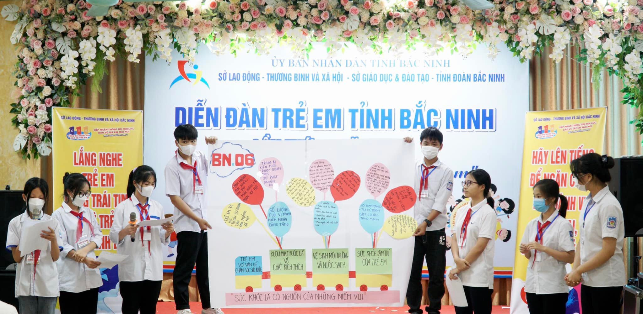 Trong khuôn khổ chương trình, “Diễn đàn Trẻ em tỉnh Bắc Ninh lần thứ V, năm 2022” đã thu hút sự tham gia của gần 500 trẻ em đại diện cho hơn 330 nghìn trẻ em toàn tỉnh.