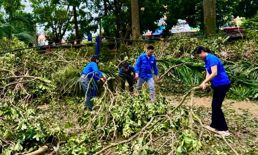 ĐVTN tham gia dọn dẹp cây xanh bị gãy, đổ