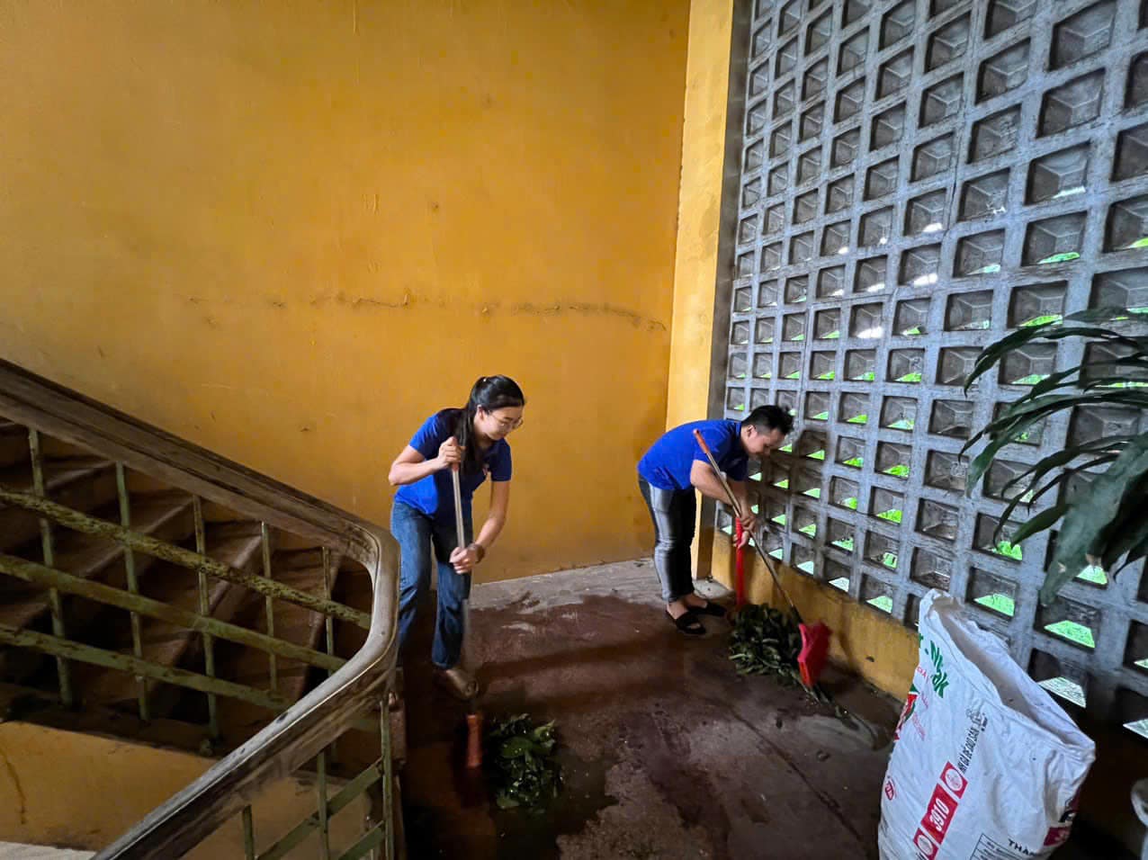 Đoàn viên thanh niên tham gia dọn dẹp làm sạch khuôn viên trường lớp kịp thời đón học sinh trở lại học tập