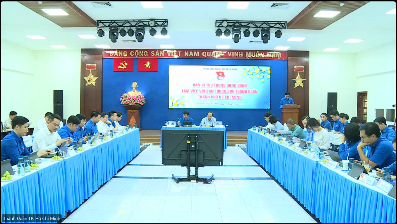 Đồng chí Bùi Quang Huy, Ủy viên dự khuyết BCH Trung ương Đảng, Bí thư thứ nhất BCH Trung ương Đoàn, Chủ nhiệm Ủy ban Quốc gia về Thanh niên Việt Nam và đồng chí Nguyễn Hồ Hải, Phó Bí thư thường trực Thành ủy Thành phố Hồ Chí Minh chủ trì buổi làm việc.