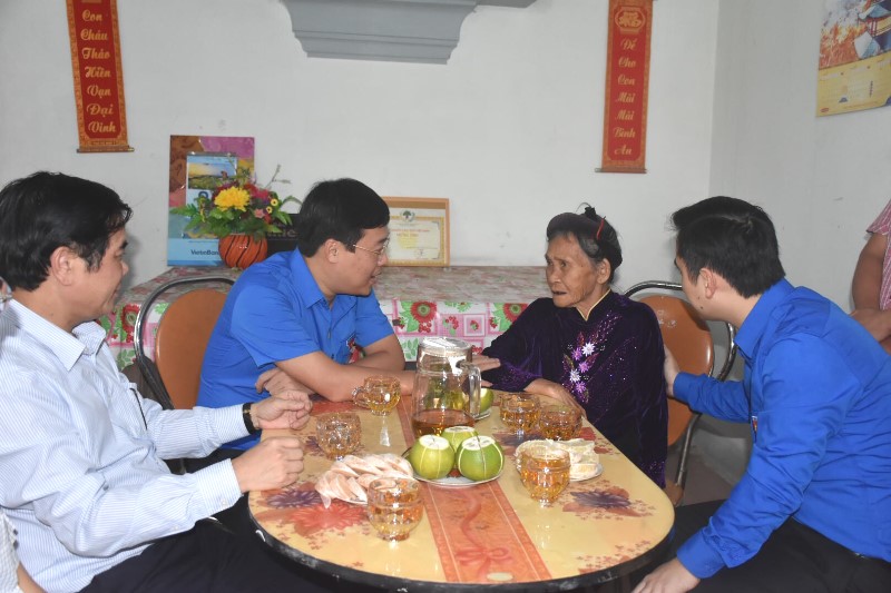 Đoàn đến thăm, tặng quà bà Lê Thị Bảy, em gái Anh hùng liệt sỹ Lý Tự Trọng tại xã Việt Xuyên, huyện Thạch Hà...