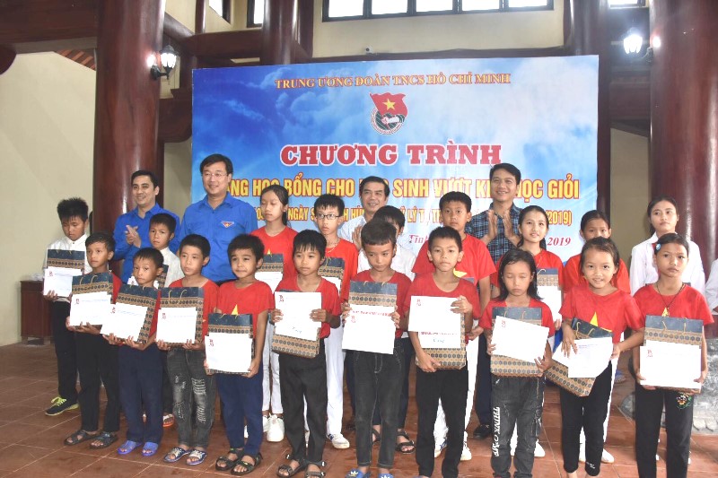 Dịp này, Ban Bí thư Trung ương Đoàn đã trao tặng 20 suất học bổng cho các em học sinh có hoàn cảnh khó khăn, mỗi suất trị giá 2 triệu đồng và dự lễ khởi công, trao tặng nhà Khăn quàng đỏ cho em Trần Thị Nga, học sinh lớp 7D, Trường THCS Long Sơn, huyện Thạch Hà trị giá 50.000.000 đồng.