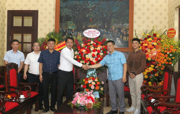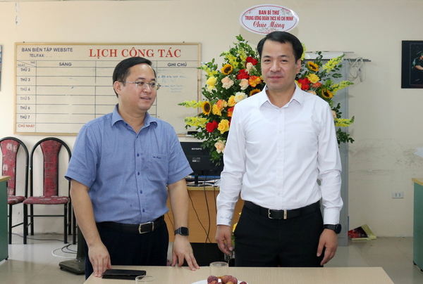 Đồng chí Ngô Văn Cương, Bí thư TƯ Đoàn cùng đoàn đại biểu tặng hoa chúc mừng Tạp chí Thanh niên nhân dịp 21.6