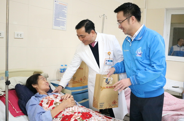 Bí thư Trung ương Đoàn Nguyễn Tường Lâm thăm, tặng quà các bệnh nhân đang điều trị tại bệnh viện K (cơ sở Tân Triều) không thể về quê đoàn tụ với gia đình trong ngày lễ cổ truyền của dân tộc