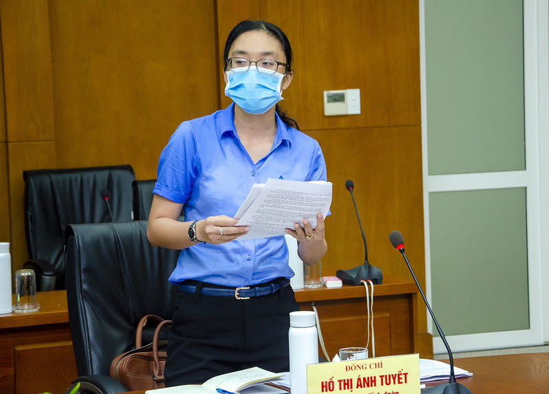 Bí thư Tỉnh Đoàn Hồ Thị Ánh Tuyết báo cáo tại buổi làm việc