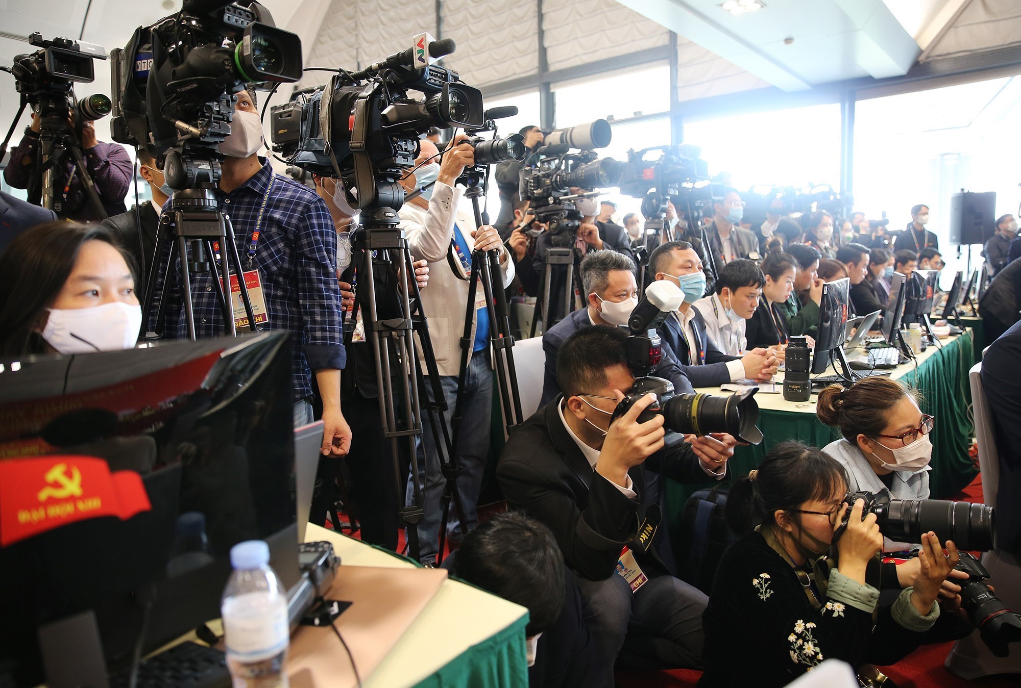 Phóng viên các cơ quan thông tấn, báo chí trong nước và quốc tế tác nghiệp tại một buổi họp báo _ Ảnh: Tư liệu