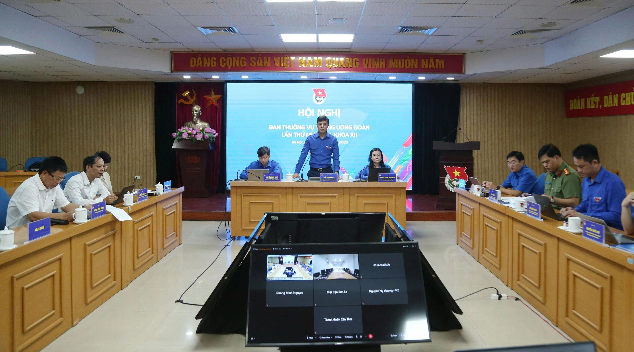 Ngày 10.10, T.Ư Đoàn đã tổ chức Hội nghị Ban Thường vụ T.Ư Đoàn lần thứ 12, khóa XII. Chủ trì hội nghị có anh Bùi Quang Huy, Ủy viên dự khuyết T.Ư Đảng, Phó chủ tịch Ủy ban T.Ư MTTQ Việt Nam, Bí thư thứ nhất T.Ư Đoàn; chị Nguyễn Phạm Duy Trang, Bí thư T.Ư Đoàn, Chủ tịch Hội đồng Đội T.Ư; anh Nguyễn Minh Triết, Bí thư T.Ư Đoàn, Chủ tịch T.Ư Hội Sinh viên Việt Nam.