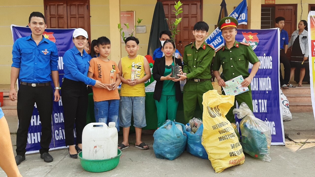 Huyện đoàn Bắc Trà My tổ chức đổi rác thải nhựa lấy đồ gia dụng và cây xanh