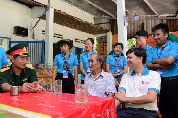 Đ/c Nguyễn Minh Triết – Phó Chủ tịch thường trực TƯ Hội Sinh viên Việt Nam, Trưởng ban Thanh niên Trường học TW Đoàn cùng các bạn sinh viên thăm và tặng quà cựu tù chính trị Côn Đảo