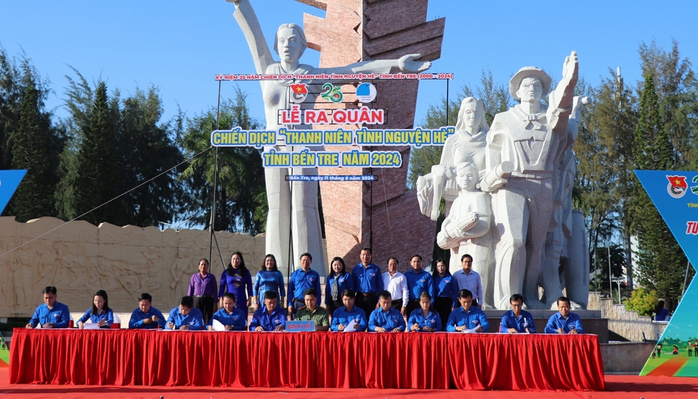 Tại Lễ ra quân, Ban Chỉ huy Chiến dịch, các đội hình ra mắt, hạ quyết tâm trước lãnh đạo, đoàn viên, thanh niên, nhân dân tỉnh nhà và nhận Cờ xuất quân từ đồng chí Hồ Thị Hoàng Yến - Quyền Bí thư Tỉnh ủy, Chủ tịch HĐND tỉnh. Ban Thường vụ các Huyện, Thành đoàn, Đoàn trường học trực thuộc, Ban Thanh niên Công an tỉnh đã ký kết thi đua thực hiện các công trình, phần việc cao điểm chào mừng kỷ niệm 25 năm Chiến dịch TNTN hè tỉnh Bến Tre. Đồng thời, Ban Thường vụ Tỉnh đoàn và các Huyện, Thành đoàn tiếp nhận các nguồn lực do các cá nhân, đơn vị đồng hành, Đoàn trường Đại học trao tặng. Tổng giá trị các công trình, phần việc tiếp nhận tại Lễ ra quân gần 13 tỷ đồng.