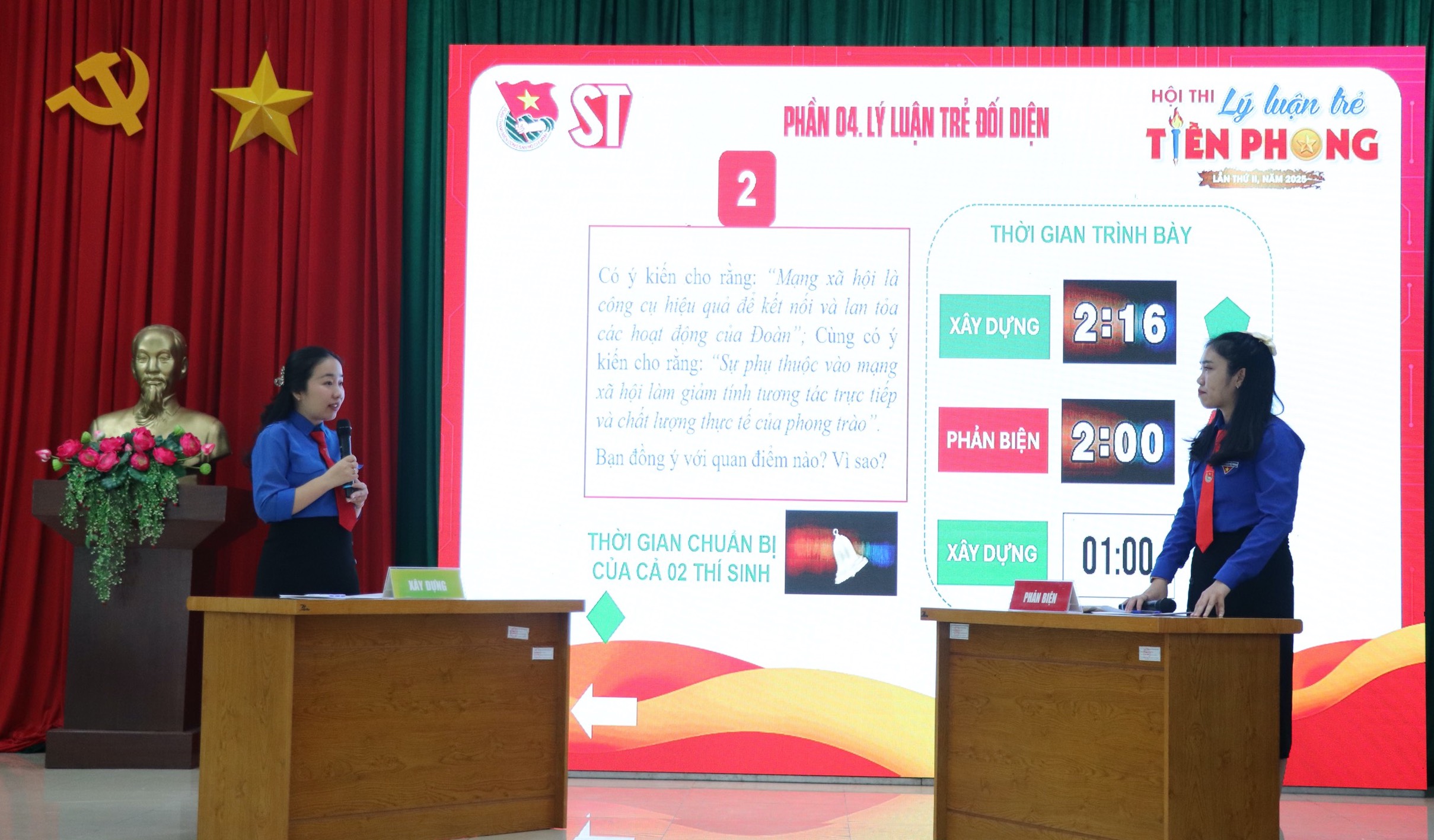 Các thí sinh tranh tài tại phần thi “Lý luận trẻ đối diện” – Thi tư duy phản biện