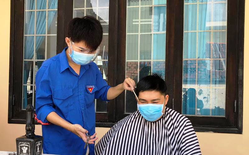 Cắt tóc cho các chiến sĩ, lực lực tình nguyện tham gia chống dịch