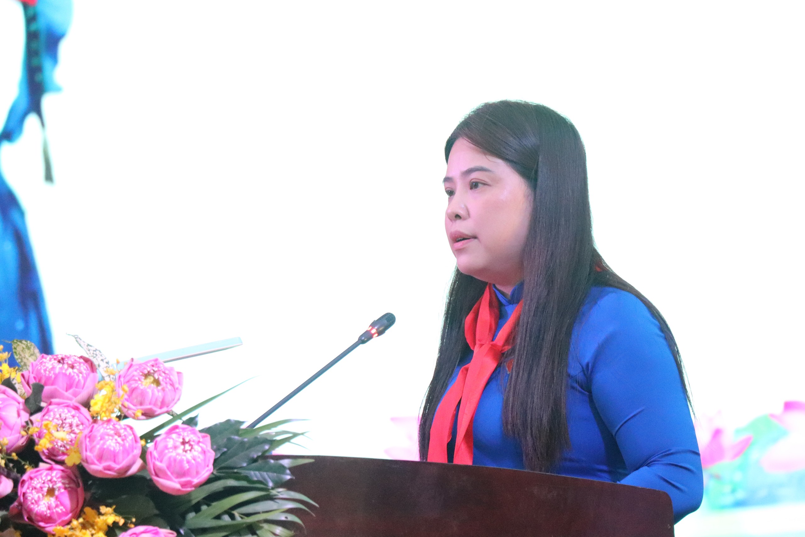 Đồng chí Võ Thị Phương Diệu, Phó Bí thư Tỉnh đoàn, Chủ tịch Hội đồng Đội tỉnh phát biểu tại đại hội