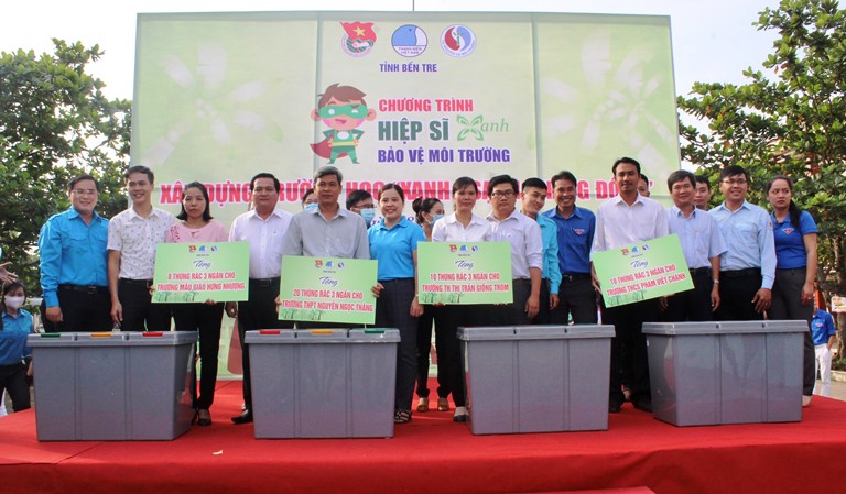 Dịp này, Tỉnh đoàn, Hội LHTN Việt Nam tỉnh và Chi cục Bảo vệ môi trường tặng 48 thùng rác 03 ngăn cho 04 trường điểm xây dựng trường học "Xanh - Sạch - Năng động" của huyện Giồng Trôm, đó là trường THPT Nguyễn Ngọc Thăng, THCS Phạm Viết Chánh, Tiểu học Thị trấn Giồng Trôm, Mẫu giáo Hưng Nhượng với tổng kinh phí trên 80 triệu đồng.