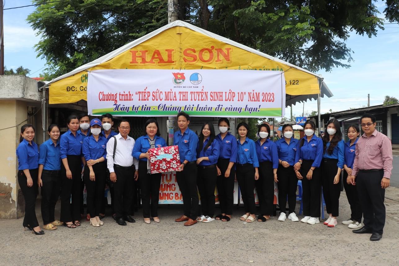 Đồng chí Bùi Văn Hản Em – Phó Trưởng ban Dân vận Tỉnh ủy và đồng chí Lâm Như Quỳnh – Ủy biên Ban Chấp hành Trung ương Đoàn, Bí thư Tỉnh đoàn đã đến thăm đội hình Tiếp sức mùa thi tại điểm trường THPT Chê Ghê-va-ra, huyện Mỏ Cày Nam