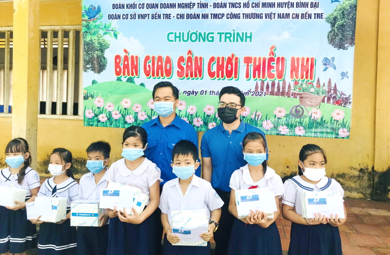 Cũng trong ngày 1/6, Đoàn cơ sở VNPT Bến Tre phối hợp Chi đoàn Ngân hàng TMCP Công Thương Việt Nam - Chi nhánh Bến Tre đã bàn giao Sân chơi tuổi thơ cho Trường Tiểu học Nguyễn Thị Hoa (xã Vang Quới Tây, huyện Bình Đại). Tổng chi phí sân chơi 30 triệu đồng, do các đơn vị vận động xã hội hóa. Đây là hoạt động nhằm hưởng ứng chiến dịch “Kỳ nghỉ hồng” của Đoàn Khối Cơ quan - Doanh nghiệp tỉnh, diễn ra trong Chiến dịch Thanh niên tình nguyện hè tỉnh năm 2021./.