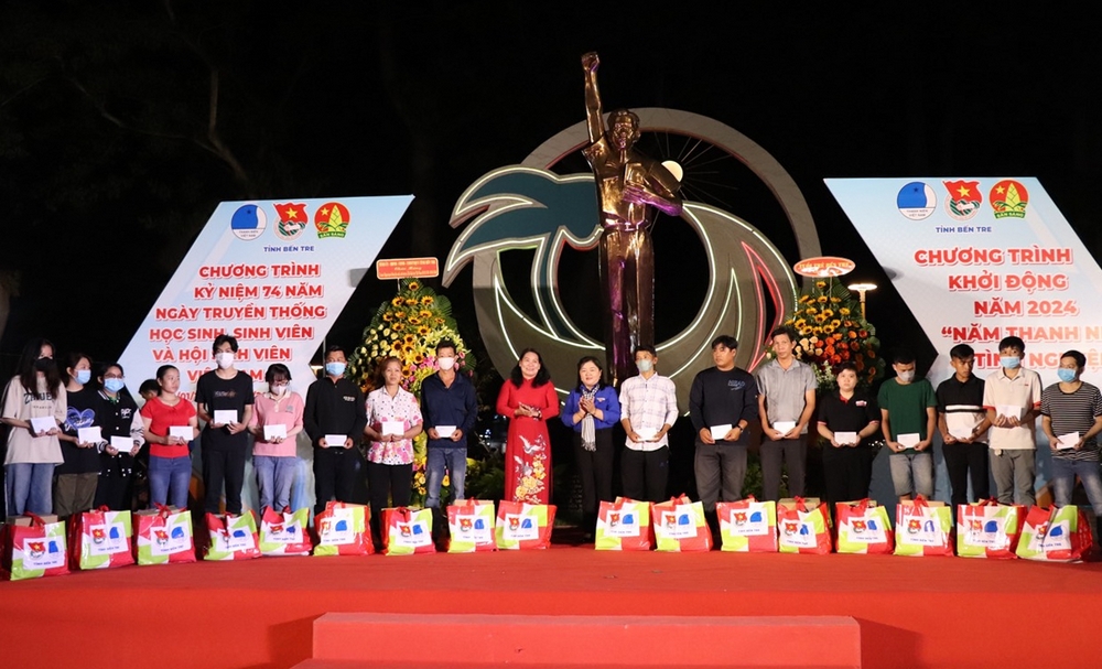 Tại chương trình, BTV Tỉnh đoàn đã tiếp nhận nhiều nguồn lực tài trợ, đồng hành với công tác Đoàn, Hội, Đội và phong trào thanh thiếu nhi trong năm 2024: 200 triệu đồng cho cho học sinh sinh viên từ Ban Liên lạc đồng hương Bến Tre tại Thành phố Hồ Chí Minh; 03 căn nhà đoàn viên, học sinh và người dân có hoàn cảnh khó khăn về nhà ở từ Ngân hàng Nông nghiệp và Phát triển Nông thôn chi nhánh Bến Tre; kinh phí 165 triệu đồng từ Hệ thống Nha Khoa Sài Gòn Tâm Đức.