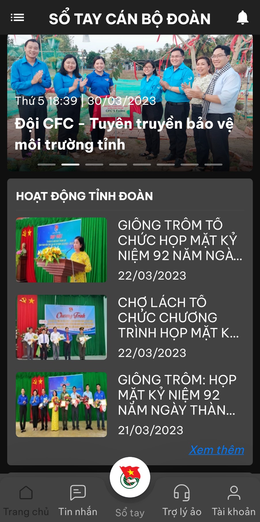 “Sổ tay điện tử cán bộ Đoàn” tỉnh Bến Tre với địa chỉ truy cập: https://sotaycanbodoanbentre.coquan.vn/ và app “Cán bộ đoàn Bến Tre” (có đầy đủ trên các nền tảng IOS và Android) với nhiều tính năng cần thiết, là địa chỉ đáng tin cậy để các bạn Cán bộ Đoàn, đoàn viên, thanh niên và người dân tìm kiếm và kết nối các thông tin liên quan đến công tác Đoàn Hội Đội tỉnh nhà như: Cơ cấu tổ chức Đoàn; các hình ảnh, video clip, hoạt động nổi bật về công tác Đoàn, Hội, Đội; các gương thanh niên tiêu biểu, thanh niên khởi nghiệp và các mô hình hay tại tỉnh.