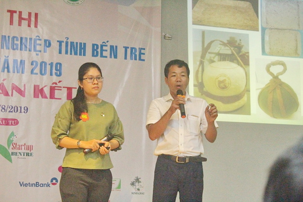2. Nhóm Lê Thanh Thủy, Trần Bá Mẫn - Ấp Vinh Hội, Xã Vang quới Tây, Huyện Bình Đại với dự án Nâng cao giá trị trái dừa Bến Tre bằng cách tạo ra các sản phẩm trồng hoa lan từ vỏ dừa