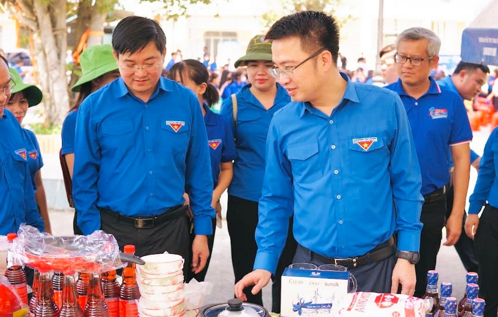 Bí thư Trung ương Đoàn Nguyễn Tường Lâm thăm các gian hàng bán giá ưu đãi cho thanh niên công nhân