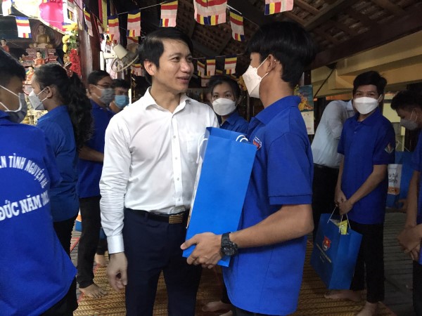 Đồng thời cũng thông tin nhanh về các hoạt động của Đoàn, Hội trong thời gian qua. Anh Nguyễn Ngọc Lương cũng đánh giá cao những đóng góp của quý bà con phật tử, thanh niên dân tộc Khmer trong tham gia các hoạt động của Đoàn, Hội, Đội và phát triển kinh tế xã hội tại địa phương. Đặc biệt trong thời gian qua đã phối hợp cùng các cấp chính quyền địa phương chung tác phòng chống dịch hiệu quả, giúp người dân ổn định cuộc sống…