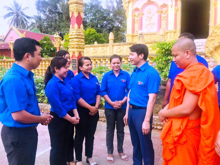 Thay mặt đoàn công tác, đồng chí Nguyễn Ngọc Lương - Bí thư Trung ương đoàn đã phát biểu ghi nhận những đóng góp của quý trụ trì, hòa thượng, chư tăng các chùa và bà con Phật tử tại địa phương. Trong những năm qua, với sự nỗ lực của toàn Đảng, toàn quân, toàn dân, đất nước ta đã đạt được nhiều thành tựu trong các lĩnh vực kinh tế, văn hóa - xã hội, quốc phòng, an ninh, đối ngoại, bảo đảm đời sống an sinh xã hội cho nhân dân. Thành tựu đó có đóng góp quan trọng của nhân dân Trà Vinh nói chung, và đồng bào dân tộc Khmer nói riêng, đã được lãnh đạo Đảng, Nhà nước ghi nhận, đánh giá cao. Nổi bật trong đó là sự đóng góp của Trụ trì các chùa Khmer, các vị chư tăng và đồng bào Phật tử ở các địa phương đã tích cực cùng chính quyền tham gia thực hiện song song 2 nhiệm vụ vừa phòng, chống dịch bệnh Covid-19, vừa tích cực tham gia các phong trào sản xuất nâng cao đời sống, giữ gìn và phát huy bản sắc văn hóa dân tộc, xây dựng nông thôn mới - đô thị văn minh. Bên cạnh đó, các cấp bộ Đoàn, Hội trong cả nước nói chung, tỉnh Trà Vinh nói riêng cũng đã luôn quan tâm triển khai thực hiện nhiều phong trào thiết thực để chăm lo cho đoàn viên, hội viên, thanh niên dân tộc Khmer.