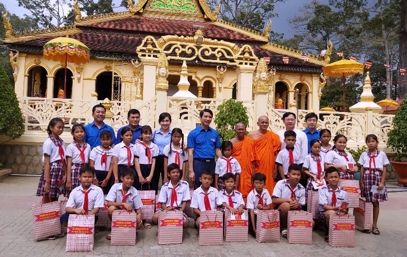 Đoàn công tác tặng quàn chùa Âng, chùa Bảy Xào Giữa và thanh niên và thiếu nhi dân tộc Khmer
