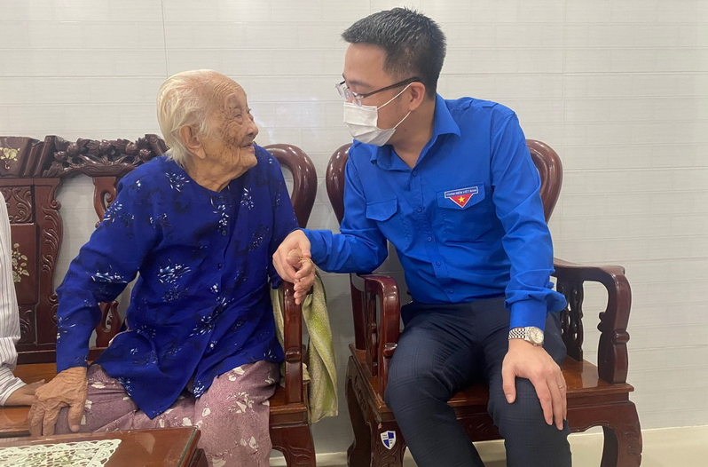 Đồng chí Nguyễn Tường Lâm - Bí thư T.Ư Đoàn, Phó Chủ tịch thường trực Hội LHTN Việt Nam cùng đoàn công tác Trung ương Đoàn thăm gia đình Mẹ Việt Nam anh hùng Phạm Thị Cục tại phường Bình Trung Tây, thành phố Thủ Đức