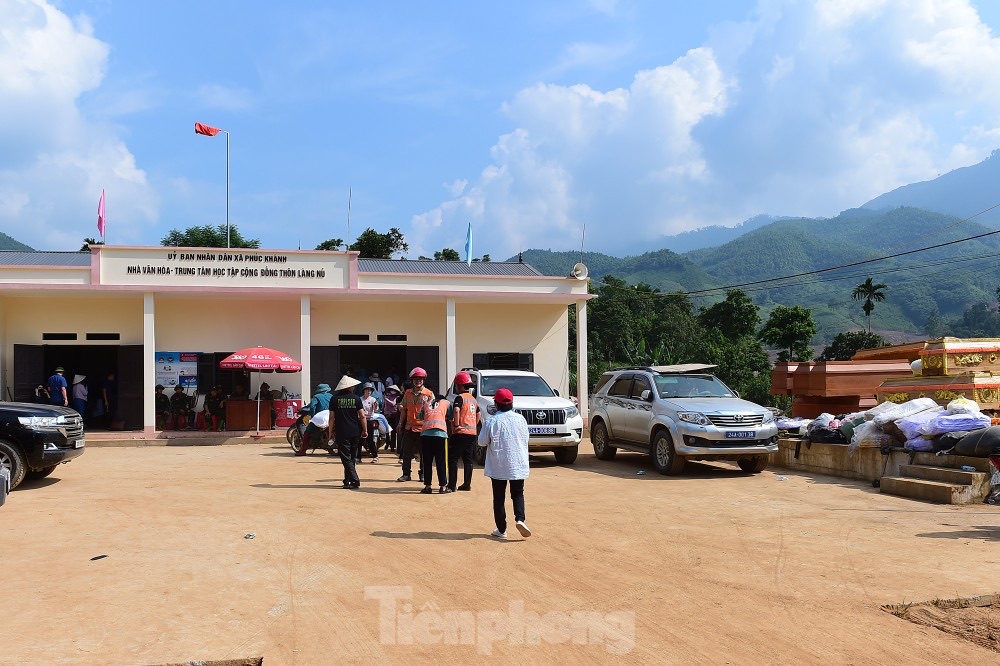Tại nhà văn hoá thôn Làng Nủ, đoàn đã trao tặng nhu yếu phẩm, túi thuốc… và tiền mặt hỗ trợ (2 triệu đồng/suất) đối với một số gia đình học sinh bị cuốn trôi nhà cửa, mất người thân do trận lũ quét.