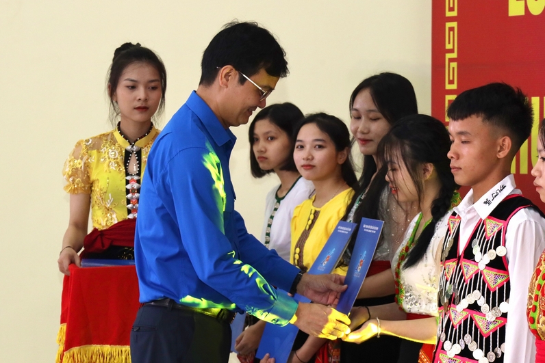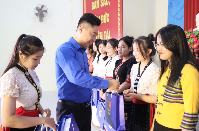 Bí thư Tỉnh Đoàn Nghệ An Lê Văn Lương tặng quà cho 20 Bí thư chi đoàn