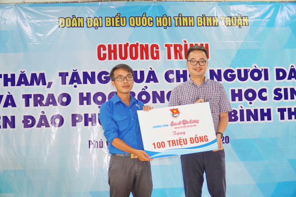 Trong chương trình làm việc tại đảo Phú Quý, đồng chí Lê Quốc Phong cùng đoàn công tác Trung ương Đoàn, đoàn đại biểu Quốc hội tỉnh Bình Thuận đã đến thăm, tặng quà cho bà con nhân dân trên đảo Phú Quý.