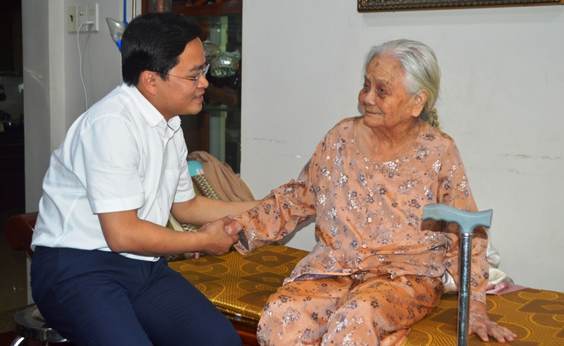 Đồng chí Nguyễn Anh Tuấn đến thăm hỏi động viên sức khỏe cụ Nguyễn Văn Vịnh, thương binh 91%