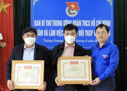 Tại buổi làm việc, Trung ương Đoàn cũng đã trao tặng Bằng khen cho 2 cá nhân của Tổng đội TNXP 9 vì đã có đóng góp tích cực, hiệu quả, giúp cho đồng bào các dân tộc thiểu số vùng cao chuyển dịch cơ cấu sản xuất, góp phần phát triển kinh tế, xây dựng và bảo vệ Tổ quốc.