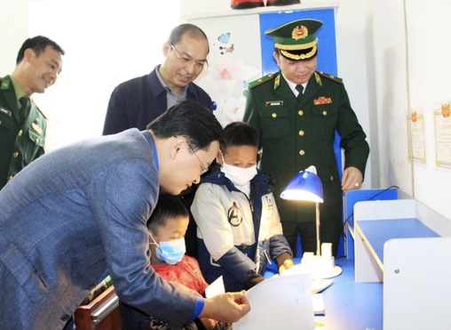 Trước đó, Đoàn công tác đã thăm, tặng quà cho 2 con nuôi của Biên Phòng CKQT Nậm Cắn. Đồng thời, trao tặng các món quà ý nghĩa tới tổ Chốt Quản lý, bảo vệ biên giới và phòng chống dịch Covid-19 tại bản Huồi Pốc (xã Nậm Cắn).