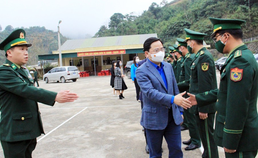 Làm việc tại với các chiến sỹ tại Đồn Biên phòng Cửa khẩu Nậm Cắn, đồng chí Bí thư thứ nhất Trung ương Đoàn Nguyễn Anh Tuấn ghi nhận những nỗ lực của Đồn trong giữ vững an ninh biên giới. Đặc biệt, trước tình hình dịch bệnh Covid-19 diễn biến phức tạp thì các chiến sỹ đã góp phần quan trọng trong phòng, chống dịch bệnh, kịp thời phát hiện, xử lý người xuất nhập cảnh trái phép. Tại đây, đoàn công tác đã trao tặng các trang thiết bị thiết yếu phục vụ công tác phòng, chống dịch Covid-19 cho các chiến sỹ của Đồn.