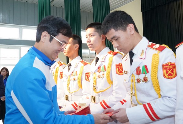 Thay mặt Trung ương Đoàn, đoàn viên, thanh niên cả nước, đồng chí Bùi Quang Huy bày tỏ sự tri ân sâu sắc tới cán bộ, chiến sĩ, đoàn viên, thanh niên các đơn vị đang làm nhiệm vụ hết sức quan trọng và có ý nghĩa, là giữ an toàn, bình yên cho nhân dân đón Tết.