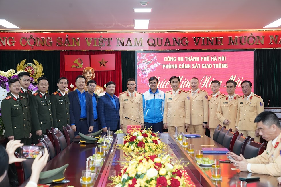 Đồng chí Bùi Quang Huy - bí thư thứ nhất Trung ương Đoàn đến chúc Tết phòng Cảnh sát giao thông Công an Thành phố Hà Nội và đoàn viên, thanh niên đang làm nhiệm vụ trực Tết