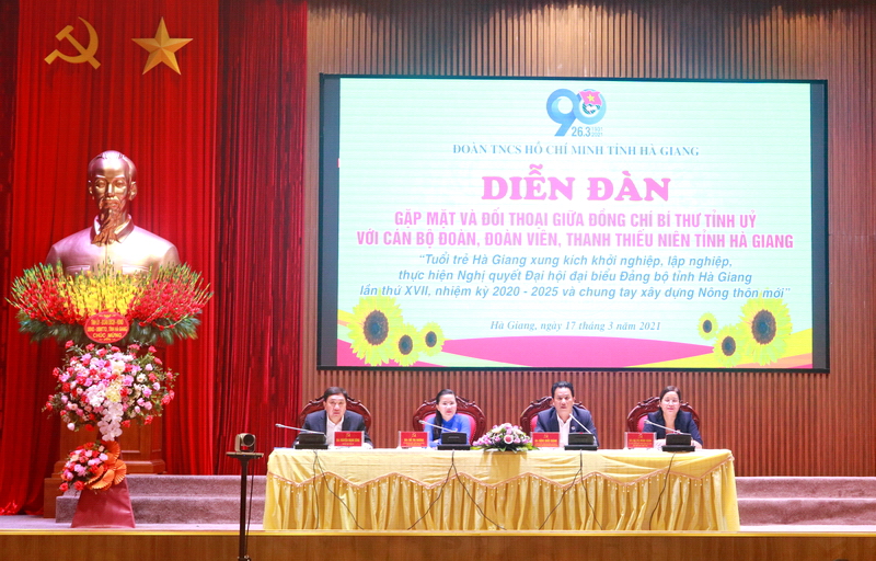 Với chủ đề “Tuổi trẻ Hà Giang xung kích khởi nghiệp, lập nghiệp, thực hện Nghị quyết Đại hội đại biểu Đảng bộ tỉnh Hà Giang lần thứ XVII, nhiệm kỳ 2020 – 2025 và chung tay xây dựng Nông thôn mới”, đồng chí Đặng Quốc Khánh, Ủy viên BCH Trung ương Đảng, Bí thư Tỉnh ủy, Trưởng đoàn ĐBQH khóa XIV tỉnh Hà Giang đã đối thoại với cán bộ đoàn, đoàn viên, thanh thiếu niên trong tỉnh. Cùng tham dự diễn đàn có đồng chí Nguyễn Mạnh Dũng - Phó Bí thư Tỉnh ủy; Thường trực HDND - UBND - Ủy ban MTTQ tỉnh.