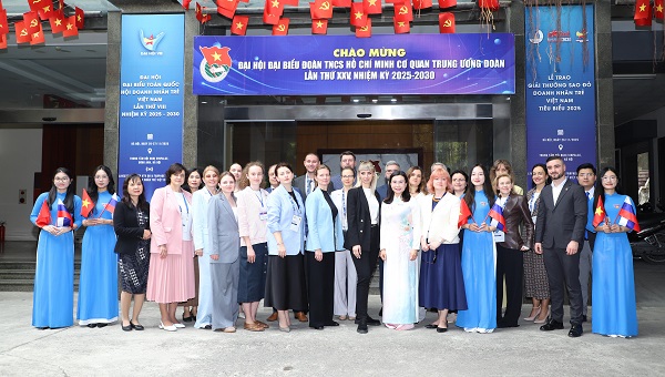 Đoàn cán bộ cấp cao của Liên bang Nga chụp ảnh lưu niệm tại Trụ sở Trung ương Đoàn TNCS Hồ Chí Minh